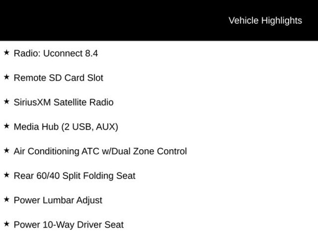- Wireless phone connectivity: Uconnect w/Bluetooth