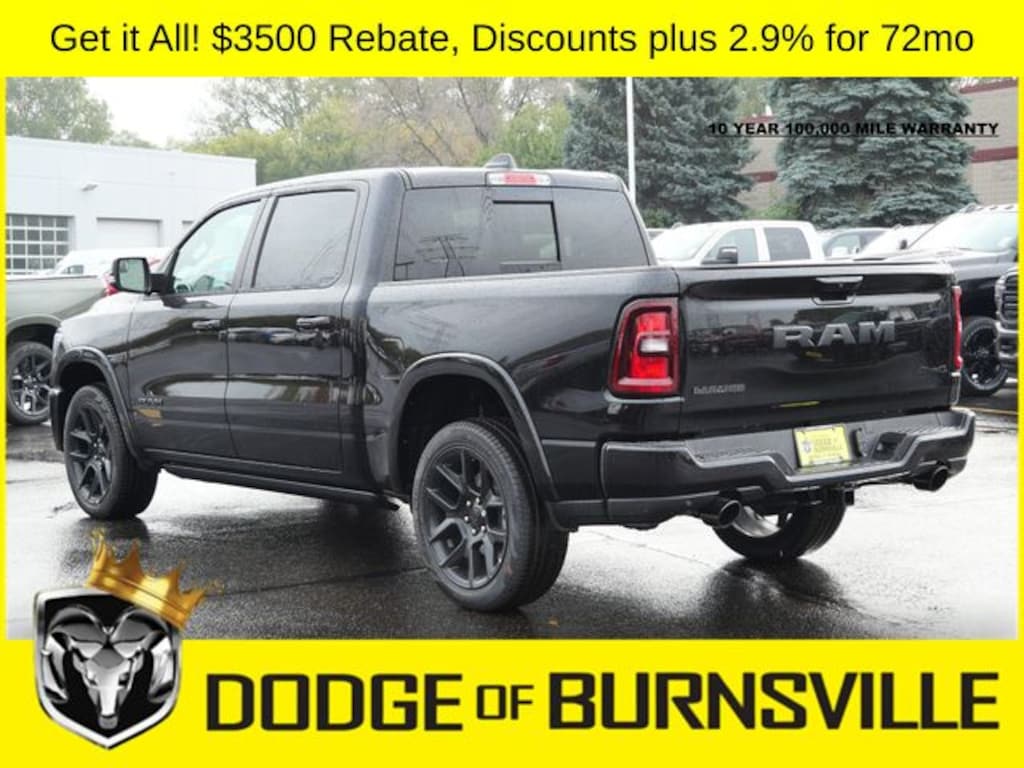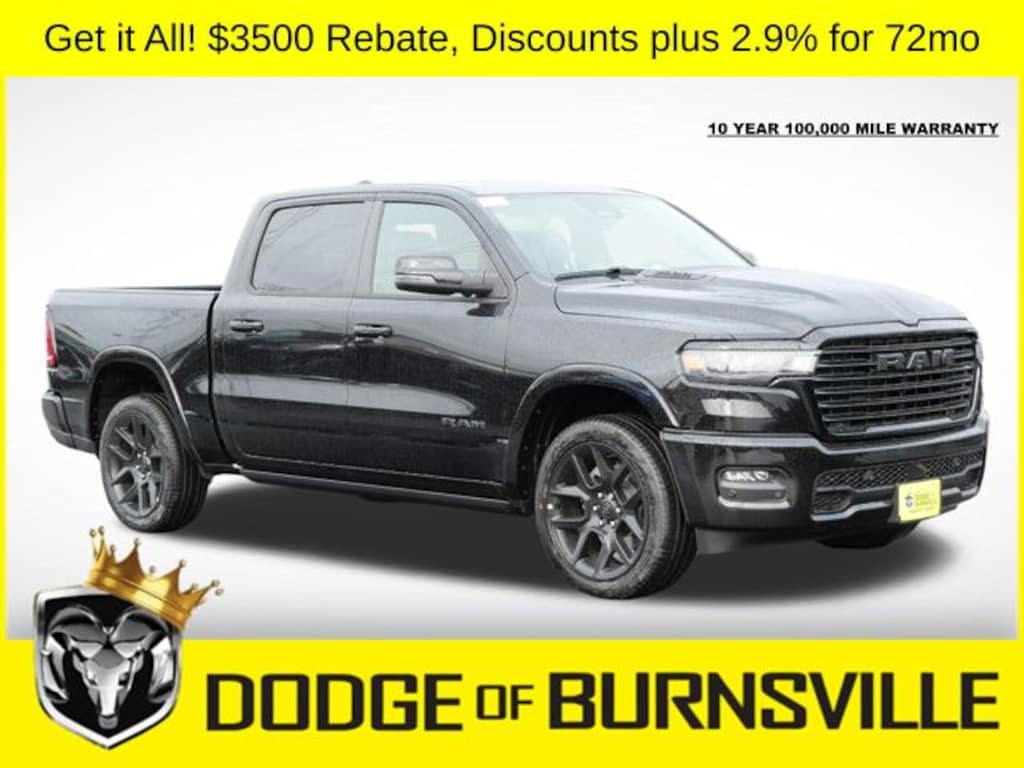 As the premier Dodge and Ram dealership in the Burnsville, Minnesota area, Dodge of Burnsville takes pride in finding the vehicle that best suits your lifestyle. Nobody sells or stocks more Ram vehicles than the King of Ram! Come into our Burnsville, Minnesota dealership today to see our unbeatable prices on everything from a new Ram 1500 to an affordable pre-owned vehicle. Since Dodge of Burnsville's founding in 1983 by John Adamich, treating each customer as part of the King of Ram family has been our number one priority. Our emphasis on quality work and fair prices are why more people turn to the King of Ram than any other dealership in Minnesota for their Ram truck needs. * THIS VEHICLE IS EQUIPPED WITH A SAFETY AND SECURITY PACKAGE INCLUDING PULSE AND SYNCHRONIZE GPS (3- YEAR SUBSCRIPTION) FOR AN ADDITIONAL $998 ABOVE THE ADVERTISED PRICE. Sale Price includes: 6% Msrp - 2026 MWBC Cover State Sales Tax Standalone % Below MSRP . Exp. 04/30/2026
