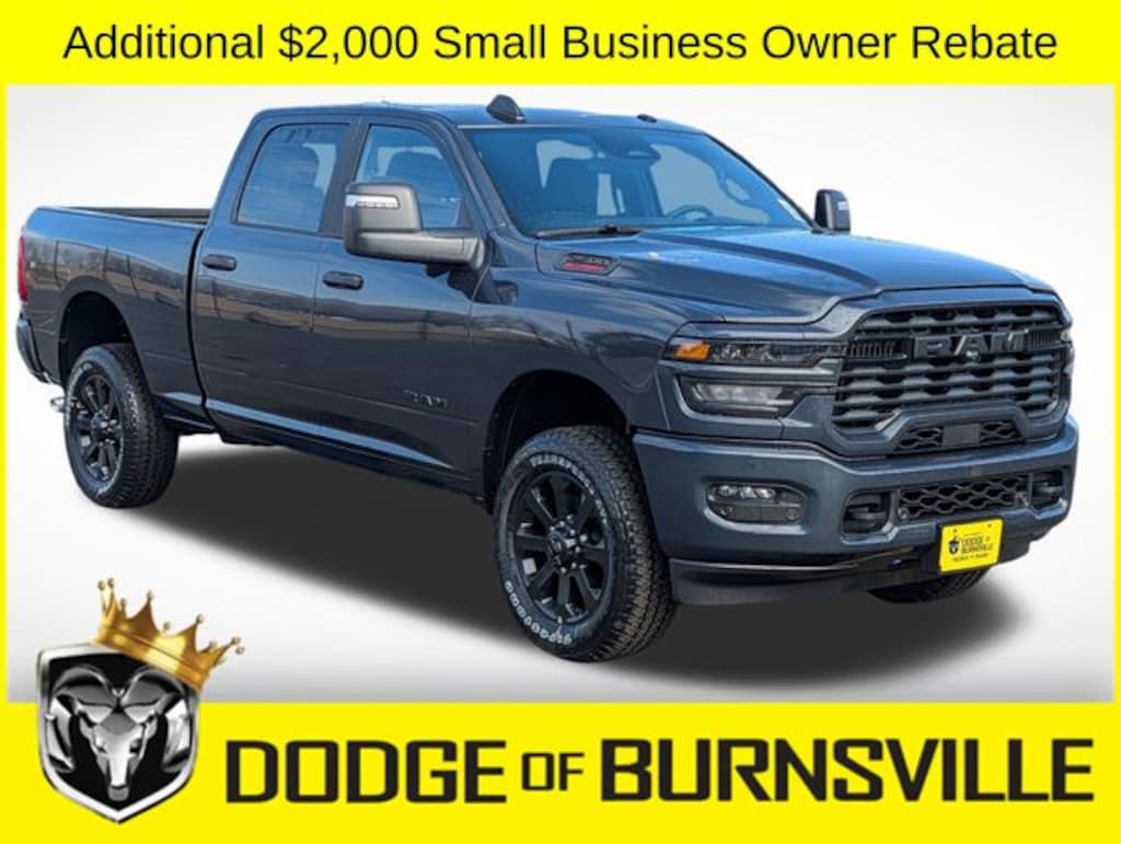 As the premier Dodge and Ram dealership in the Burnsville, Minnesota area, Dodge of Burnsville takes pride in finding the vehicle that best suits your lifestyle. Nobody sells or stocks more Ram vehicles than the King of Ram! Come into our Burnsville, Minnesota dealership today to see our unbeatable prices on everything from a new Ram 1500 to an affordable pre-owned vehicle. Since Dodge of Burnsville's founding in 1983 by John Adamich, treating each customer as part of the King of Ram family has been our number one priority. Our emphasis on quality work and fair prices are why more people turn to the King of Ram than any other dealership in Minnesota for their Ram truck needs. * THIS VEHICLE IS EQUIPPED WITH A SAFETY AND SECURITY PACKAGE INCLUDING PULSE AND SYNCHRONIZE GPS (3- YEAR SUBSCRIPTION) FOR AN ADDITIONAL $998 ABOVE THE ADVERTISED PRICE. Sale Price includes: $1000 - 2026 National Bonus Cash . Exp. 04/30/2026