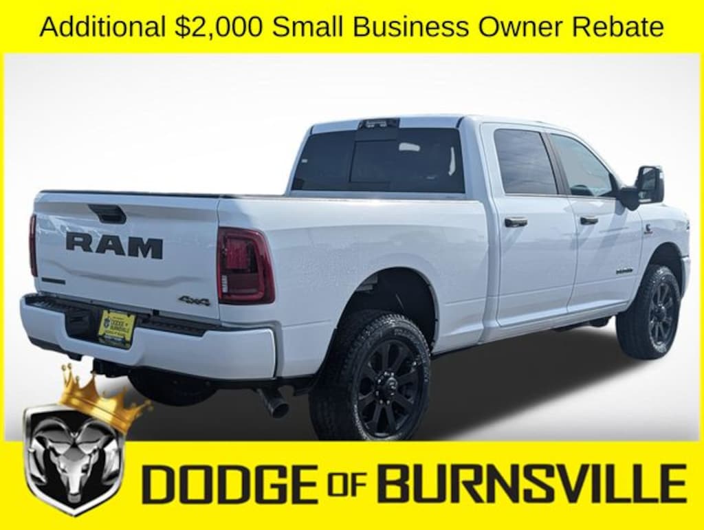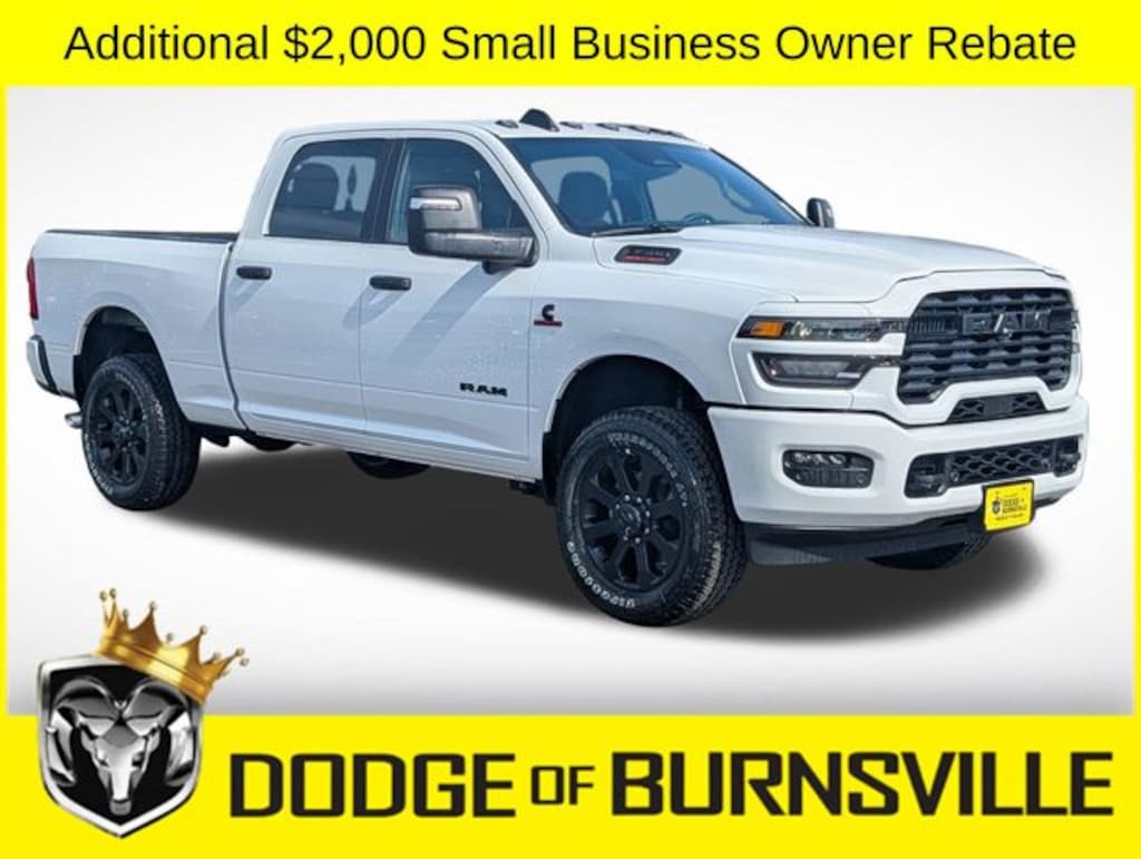 As the premier Dodge and Ram dealership in the Burnsville, Minnesota area, Dodge of Burnsville takes pride in finding the vehicle that best suits your lifestyle. Nobody sells or stocks more Ram vehicles than the King of Ram! Come into our Burnsville, Minnesota dealership today to see our unbeatable prices on everything from a new Ram 1500 to an affordable pre-owned vehicle. Since Dodge of Burnsville's founding in 1983 by John Adamich, treating each customer as part of the King of Ram family has been our number one priority. Our emphasis on quality work and fair prices are why more people turn to the King of Ram than any other dealership in Minnesota for their Ram truck needs. * THIS VEHICLE IS EQUIPPED WITH A SAFETY AND SECURITY PACKAGE INCLUDING PULSE AND SYNCHRONIZE GPS (3- YEAR SUBSCRIPTION) FOR AN ADDITIONAL $998 ABOVE THE ADVERTISED PRICE. Sale Price includes: $1000 - 2026 National Bonus Cash . Exp. 04/30/2026